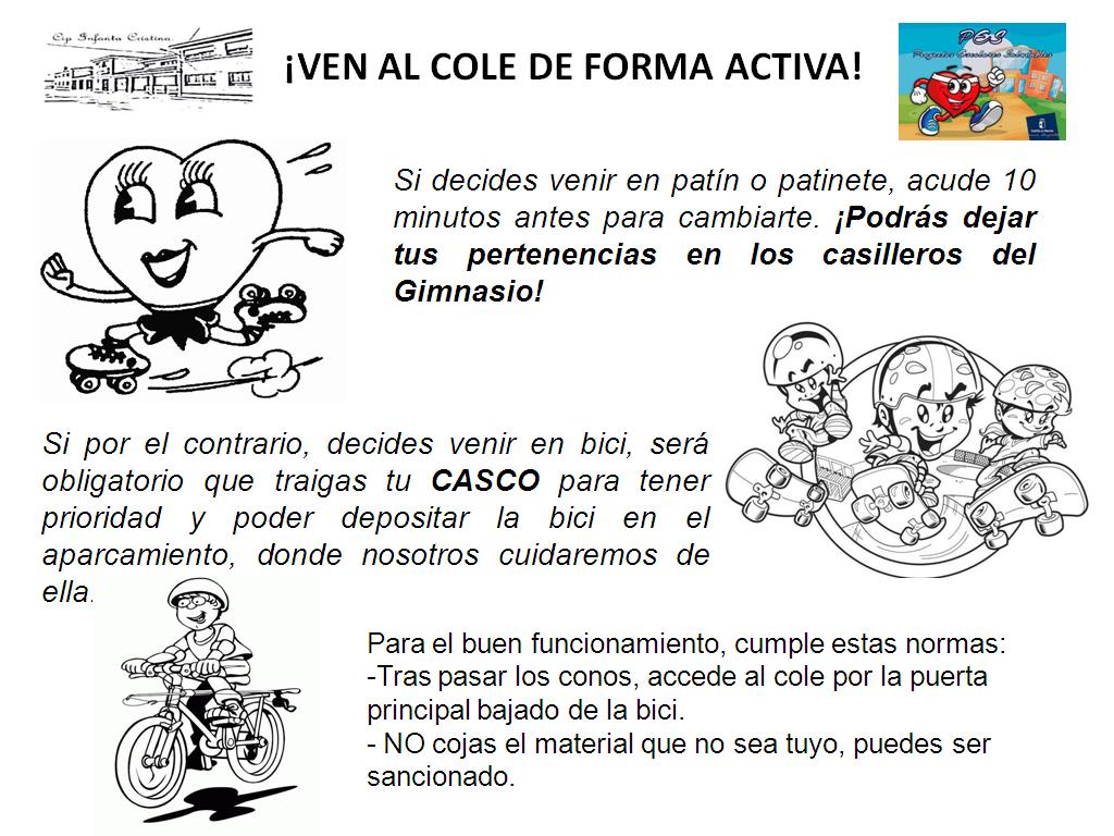 Con esta normativa que esperamos todos cumplir, damos el pistoletazo de salida al “CAMINO SEGURO AL COLE DE FORMA ACTIVA” planteado en nuestro PES (Proyecto Escolar Saludable).