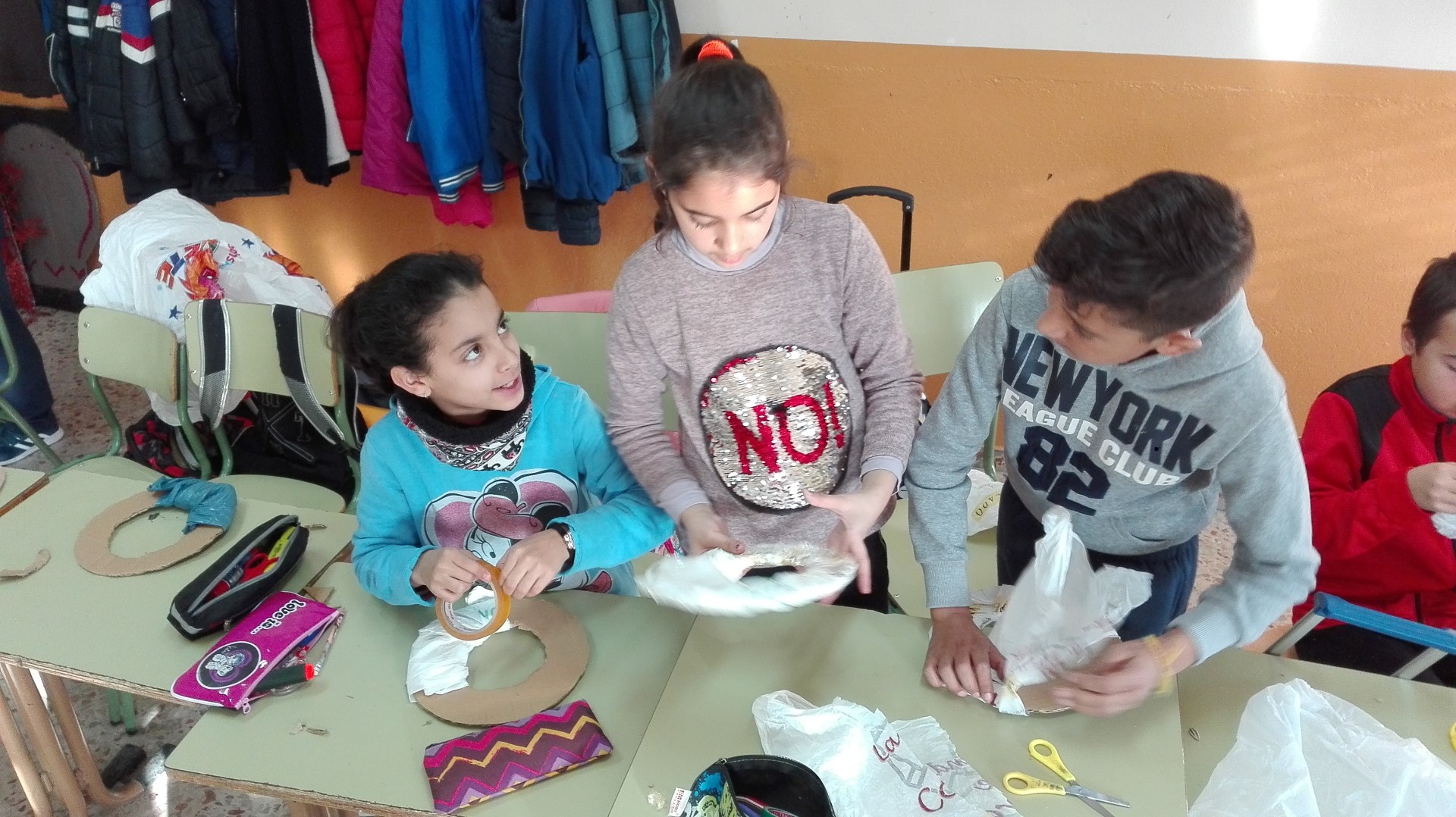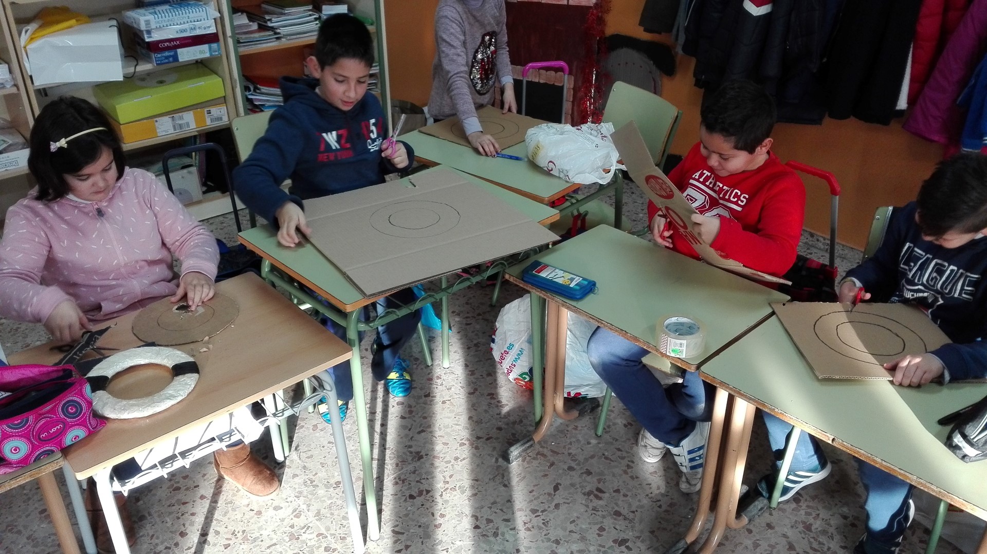 Aquí os dejamos una de las numerosas actuaciones que trabajaremos este curso para desarrollar nuestro PROYECTO ESCOLAR SALUDABLE. Los alumnos de 4º han estado esta mañana fabricando unos ringos, con los que trabajaremos en las próximas semanas en las clases de Educación Física para ofrecerles a los alumnos/as una nueva alternativa de ocio y para mejorar conceptos de iniciación deportiva y educación deportiva.