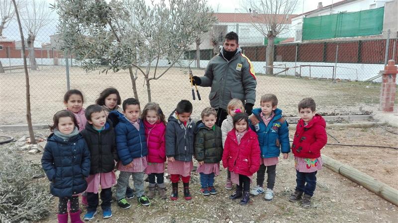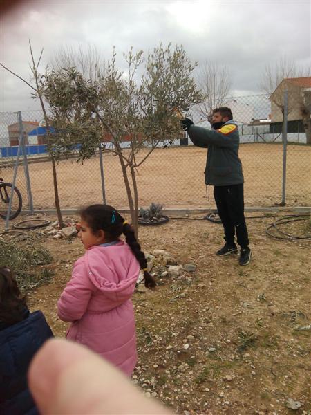 También en infantil, han asistido a la poda de nuestro olivo. Este árbol es de hoja perenne, al que le encanta el sol y el calor, y su fruto es la aceituna (verde al principio y negro al final de su maduración), con el que se fabrica el aceite de oliva virgen. Florece de mayo a julio y el fruto lo hace de septiembre a diciembre. Con la poda, conseguimos dirigir el árbol hacia donde queremos, con la densidad vegetativa que queremos, la forma de expansión de la copa… Ello nos sirve para equilibrar las producciones, incluso para reparar y restaurar las partes dañadas. Para ello nos ha ayudado Ignacio, al que agradecemos su trabajo con gran esmero.