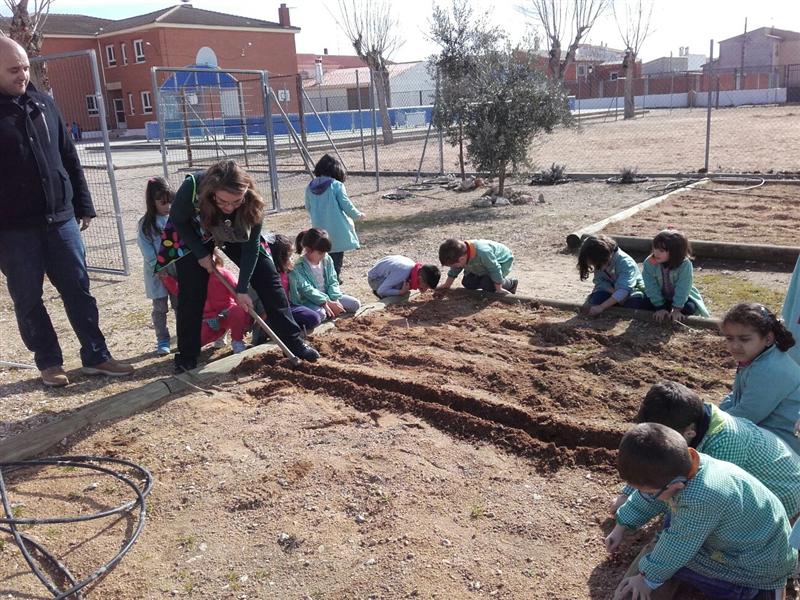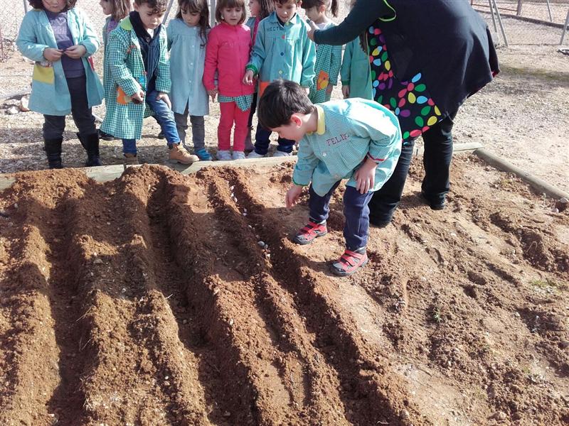 Así, los alumnos/as de infantil han sembrado ajos en uno de los parterres. Entre sus propiedades destacan que son un buen aliado de nuestro aparato digestivo ya que nos ayudan a prevenir inflamaciones estomacales y favorece la eliminación de bacterias dañinas de los intestinos.