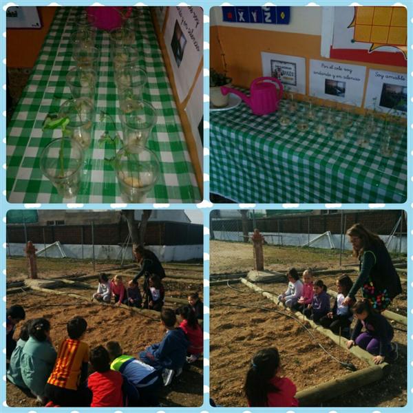 Otro curso, en Primero, están estudiando las plantas: sus partes, el alimento que necesitan para crecer y sus diversos tipos. Para hacer este aprendizaje mas significativo, han sembrado sus propias semillas en clase y también en el huerto, además de llevar una hoja de registro donde van apuntando cuánto crecen.