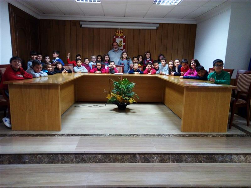 En la mañana de ayer jueves, el alumnado de 2º de Primaria realizó una marcha hasta el Ayuntamiento de la localidad con la finalidad de visitar todas las dependencias con las que cuenta: el salón de plenos, los despachos del personal y de los concejales y el balcón de honores.