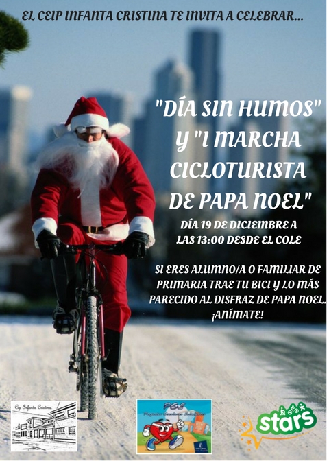 A su vez, la COMISIÓN STARS y el Claustro de maestros/as hemos visto muy interesante aprovechar este día para celebrar una marcha cicloturista de Papa Noel debido a las fechas navideñas que se aproximan.