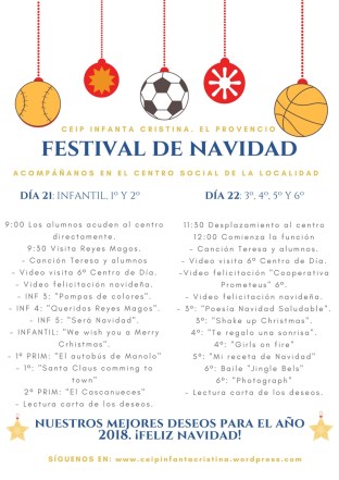 - El día 21 de diciembre a partir de las 9:30 comenzará la función de Infantil, primero y segundo de Primaria.