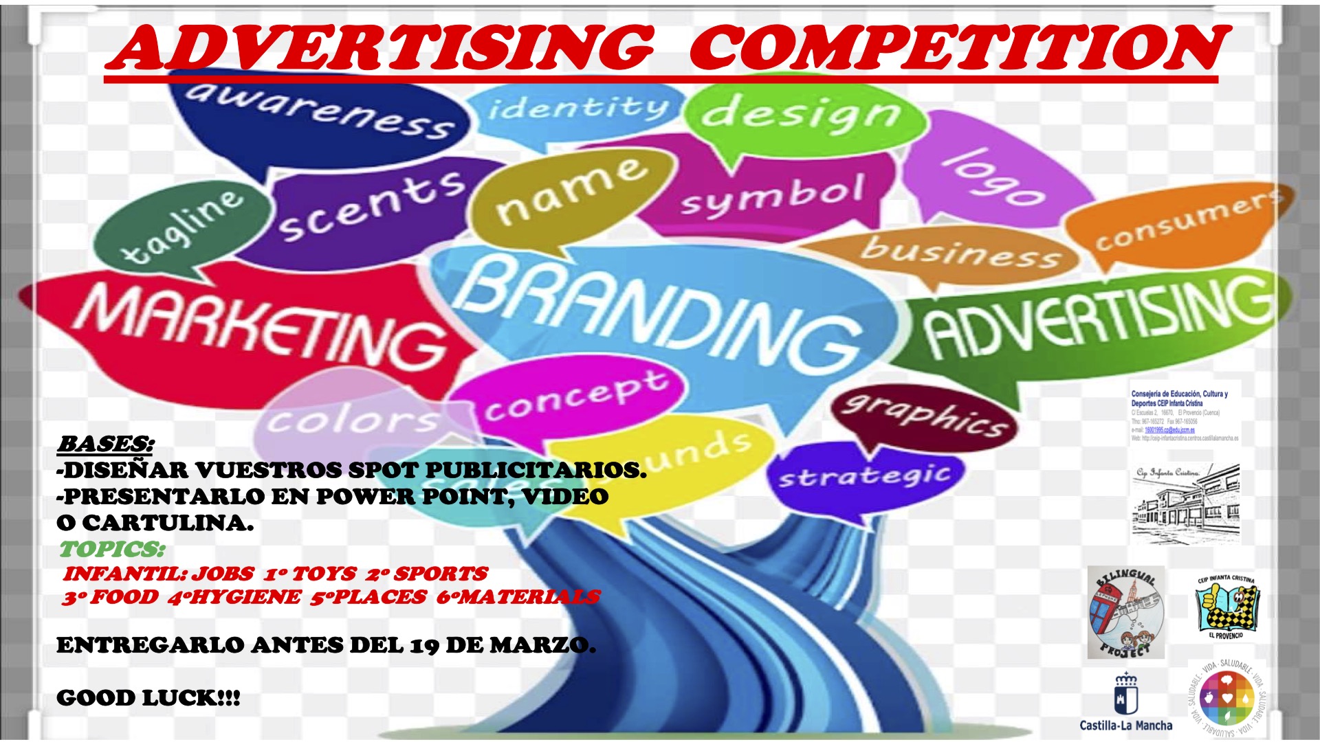 Hoy os vamos a retar a todos a un nuevo concurso que nos viene del departamento del plurilinguísmo del cole, en donde nos proponen que participemos en “ADVERTISING COMPETITION” y qué es esto, os preguntareis pues bien… os explico.