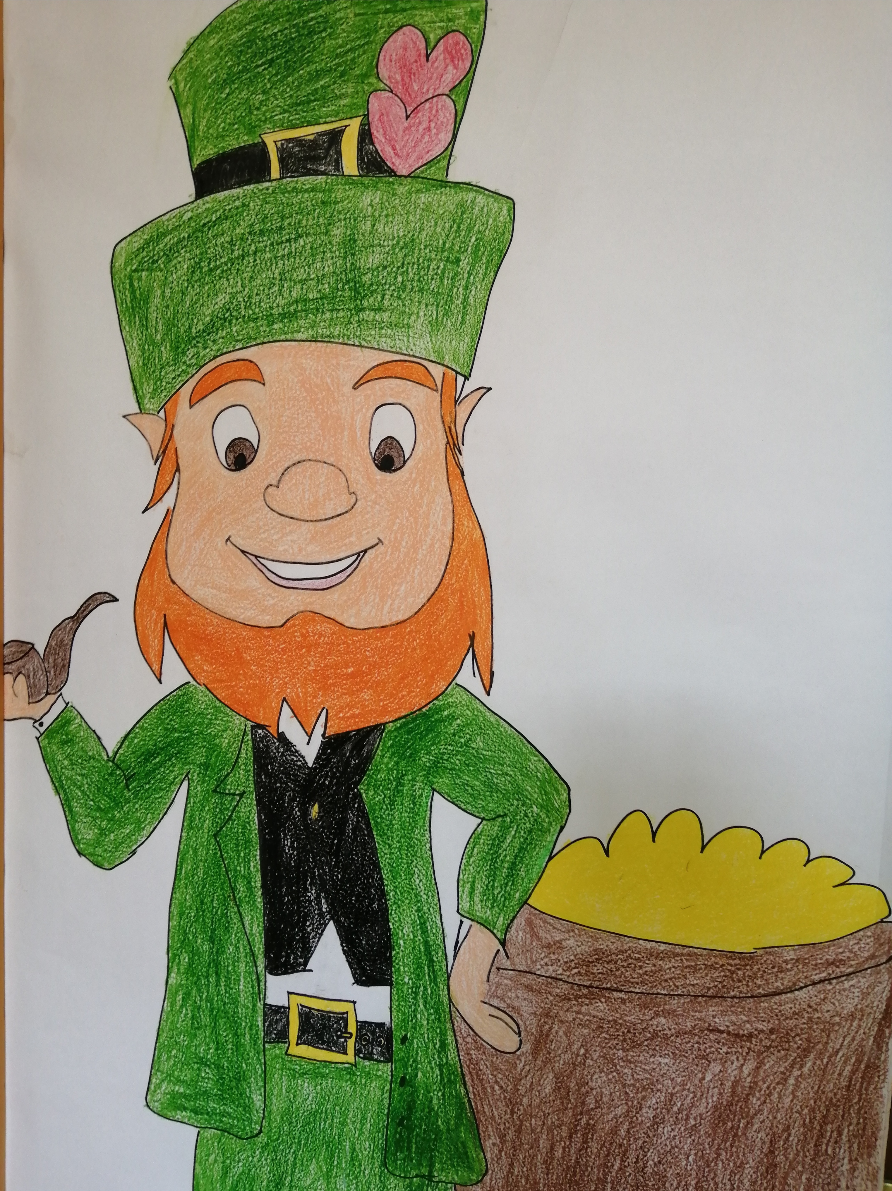 Hoy celebramos en el cole “SAINT PATRICK´S DAY” típica fiesta irlandesa donde su “LEPRECHAUN” que es un tipo de duende o ser feérico, es decir, ser de la naturaleza dual: MATERIAL Y ESPIRITUAL masculino que habita en la isla de Irlanda. Son criaturas que pertenecen al folclore y a la mitología irlandesa. Suelen adoptar la forma de hombres viejos que disfrutan realizando travesuras y se dice que son muy ricos porque custodian vasijas de barro llenas de tesoros, la suerte del irlandés.