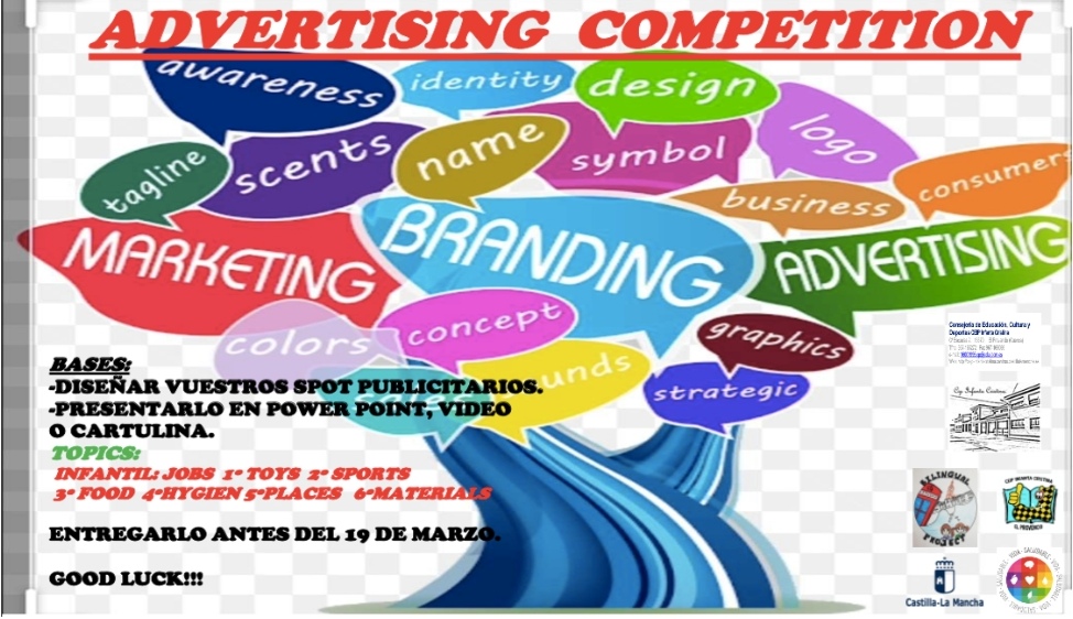 La actividad propuesta era la realización de ANUNCIOS- ADVERTISING COMPETITION. Cada grupo tenía una misión que realizar, es decir, se le dio un tema en concreto para dirigir su anuncio y donde solo tenía que durar un mínimo de 20 a 40 segundos para vendernos sus maravillosos productos y … LO HAN CONSEGUIDO!!!