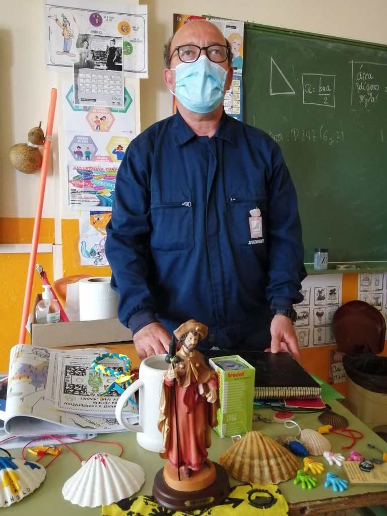 Ayer nuestro querido conserje, Manolo, nos dio una clase magistral, como HOSPITALERO que es, aprovechando que en la asignatura de Ciencias Sociales se está trabajando “El Camino de Santiago“.