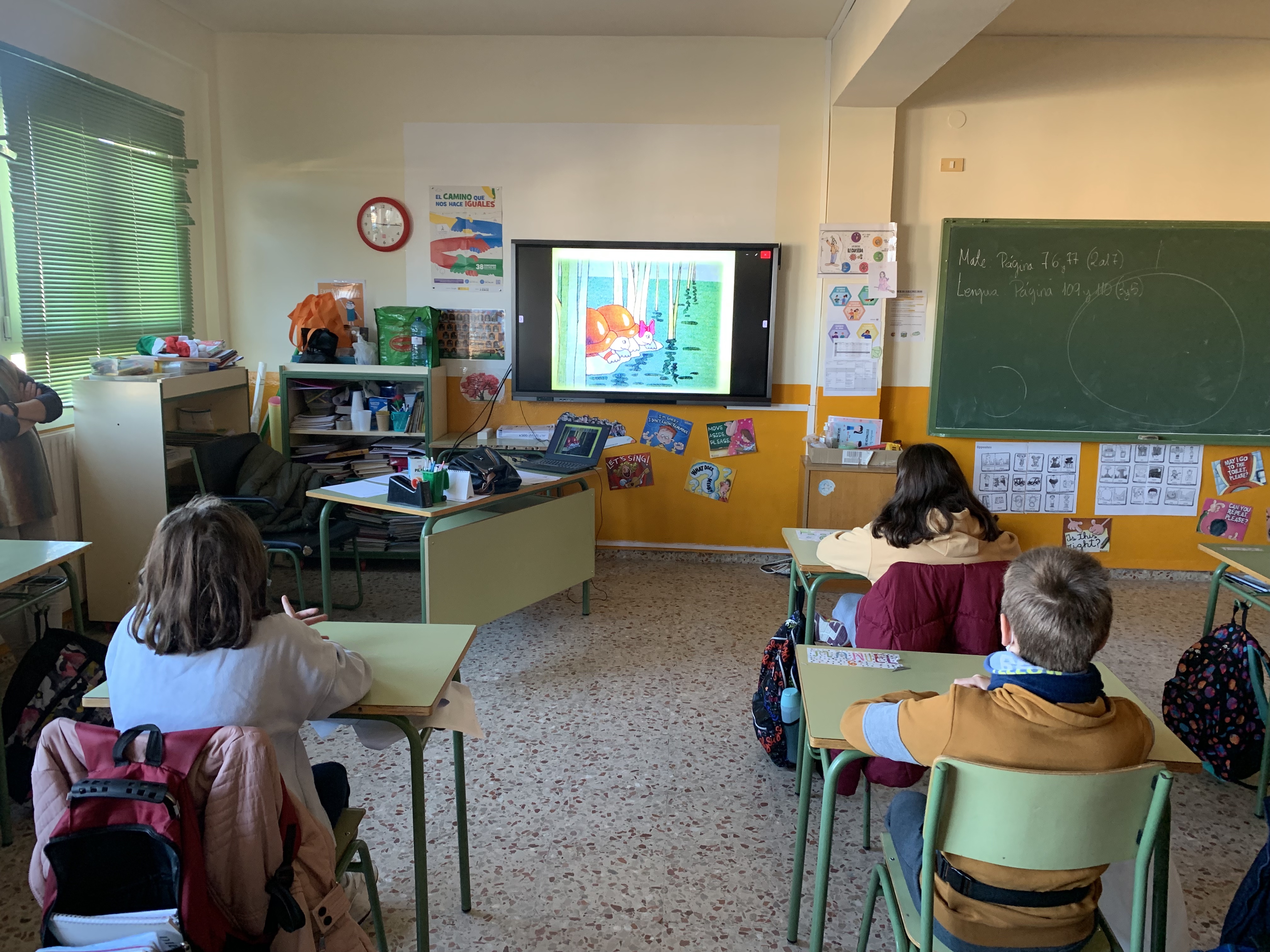 Lo primero que han hecho, ha sido ver y escuchar el cuento de Clementina y Arturo. Tomándolo como referencia, han hablado sobre la importancia de tratar con respeto a tu pareja, compañero/a o amigo/a sin importancia del género. A continuación, han rellenado una ficha con preguntas sobre el cuento para reflexionar sobre el tema.