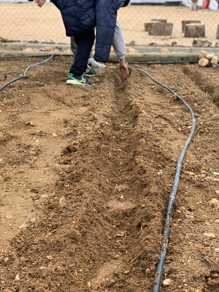 Tras una intensa jornada de limpieza, desbrozado y reestructuracion del huerto, en el día de hoy y en colaboración con algunos alumnos/as de 4º y 5º de primaria, Carlos ha realizado una bonita jornada donde se han plantado rabanitos y que junto con las habas que ya se plantaron anteriormente, completamos los objetivos marcados para este primer trimestre.