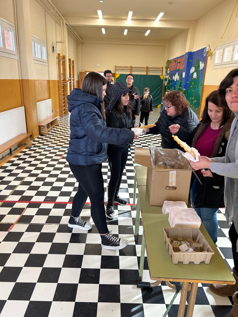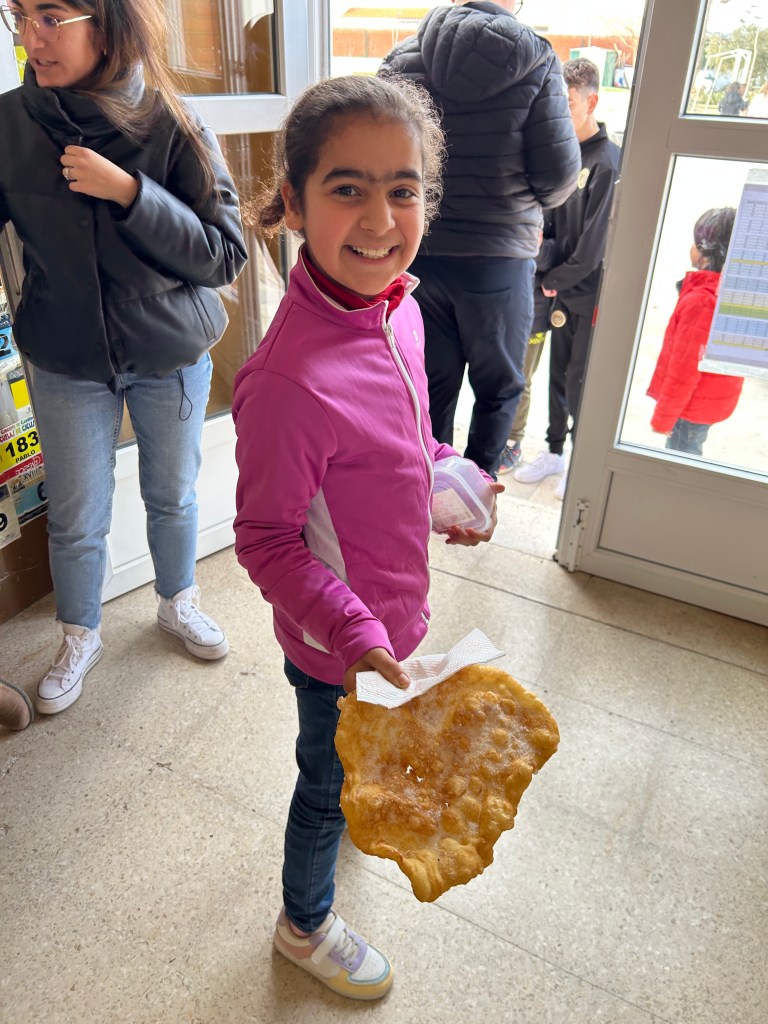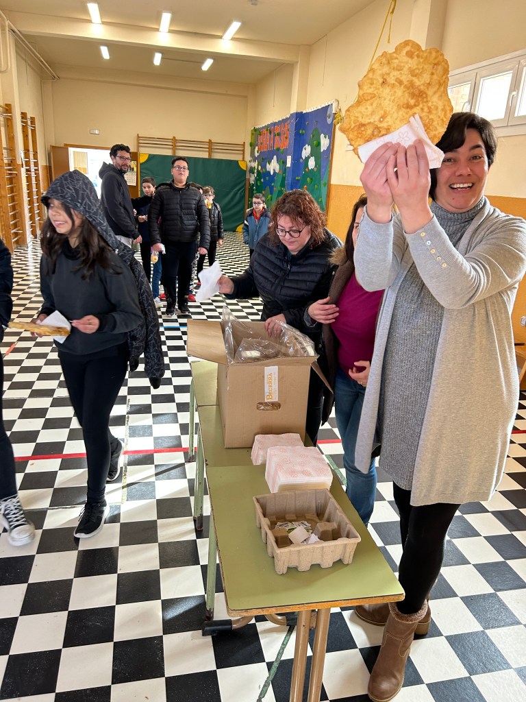 Hoy gracias al AMPA de nuestro cole, hemos podido degustar las tortas típicas fritas en sartén y dar así el pistoletazo de salida a la celebración inminente del carnaval (recordar que la semana que viene empezamos el miércoles con la PATARRONA).