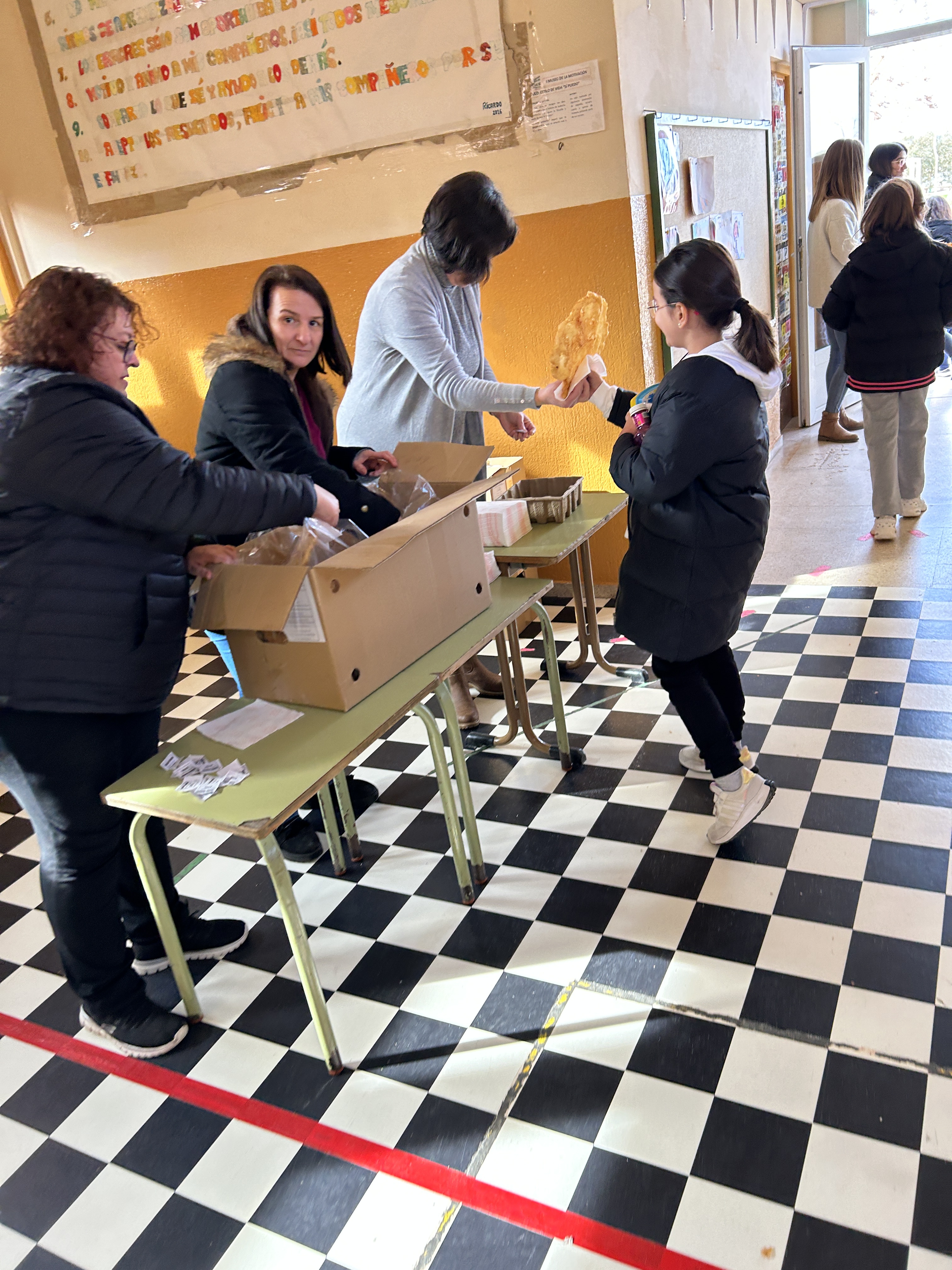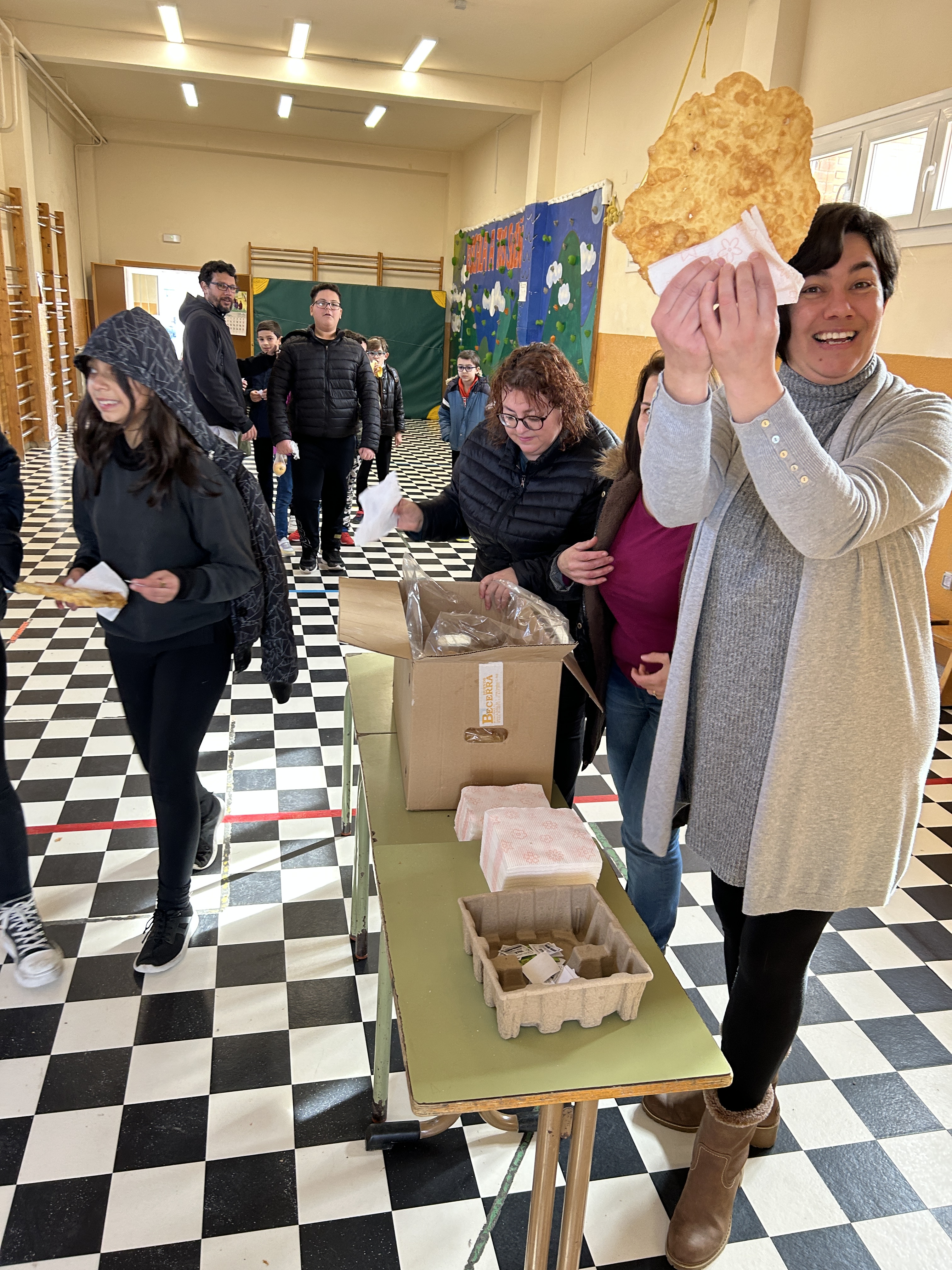Hoy gracias al AMPA de nuestro cole, hemos podido degustar las tortas típicas fritas en sartén y dar así el pistoletazo de salida a la celebración inminente del carnaval (recordar que la semana que viene empezamos el miércoles con la PATARRONA).