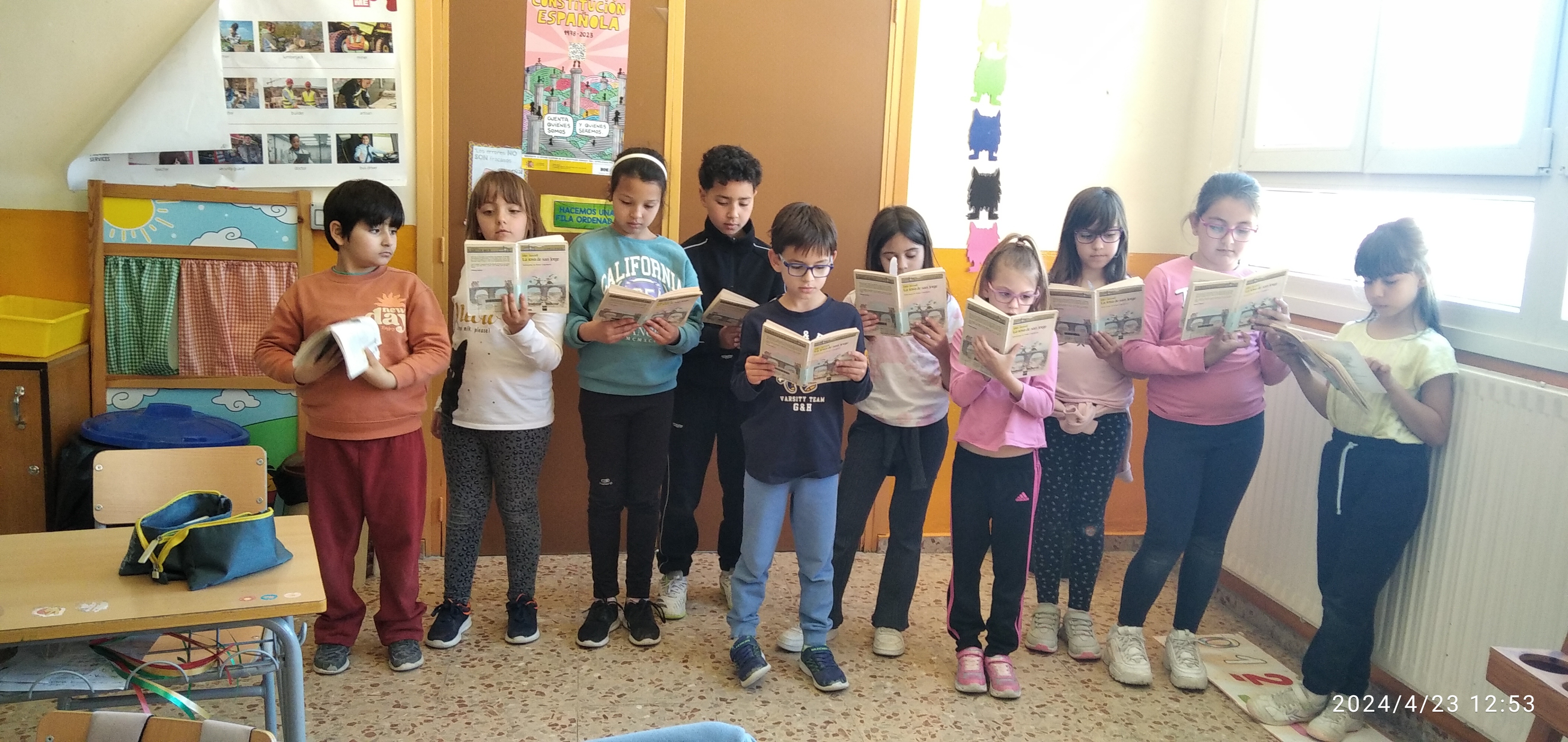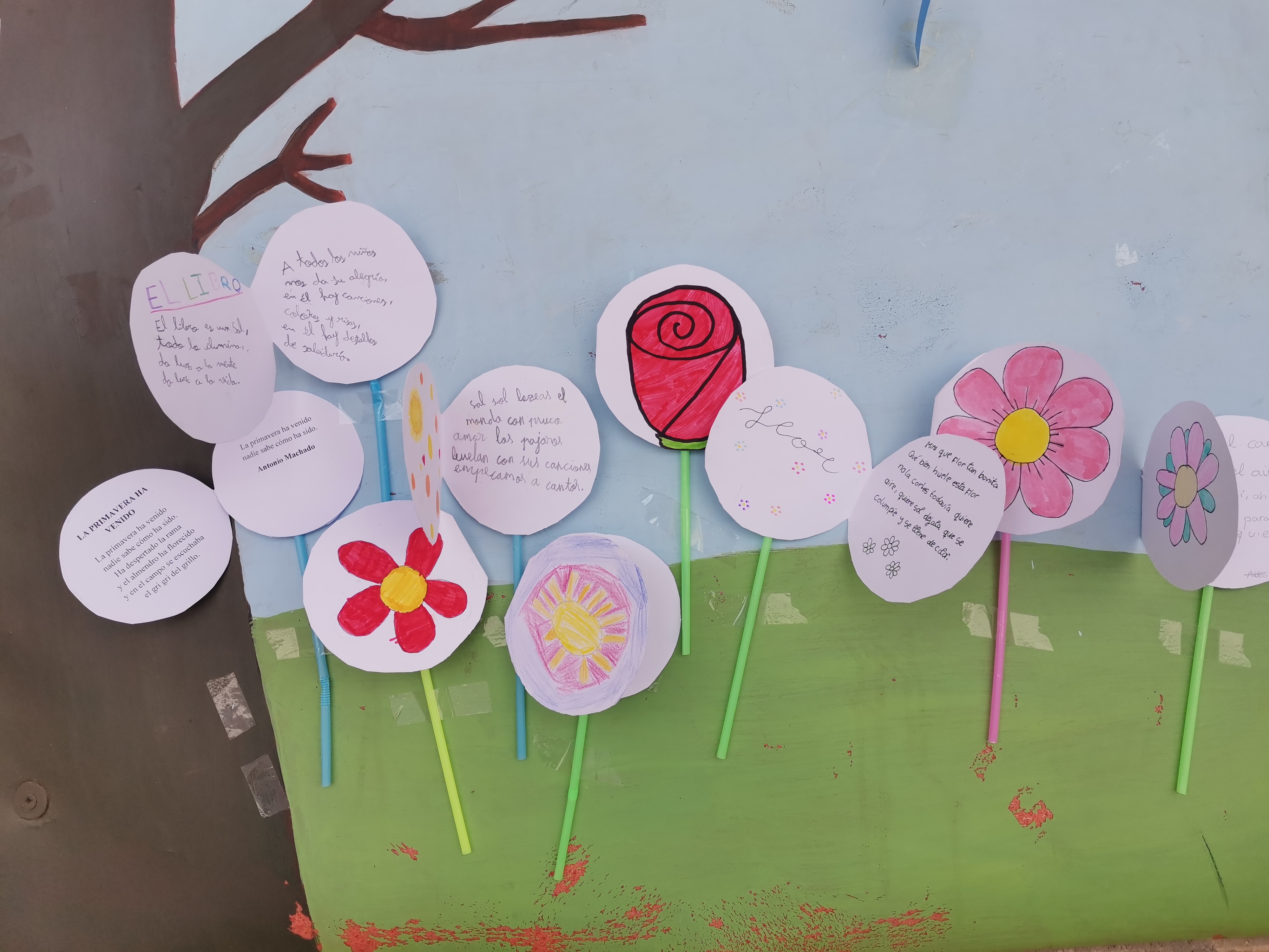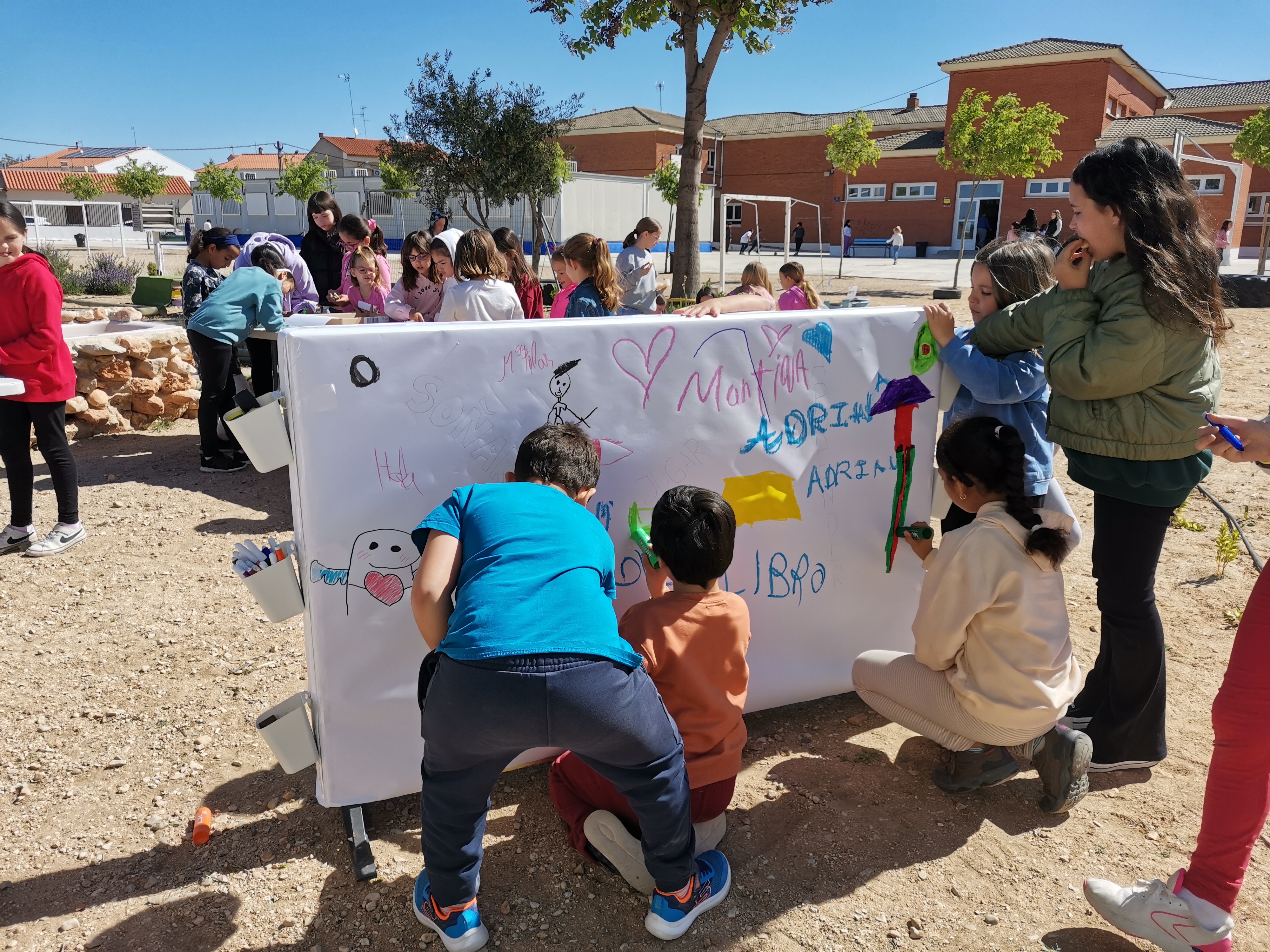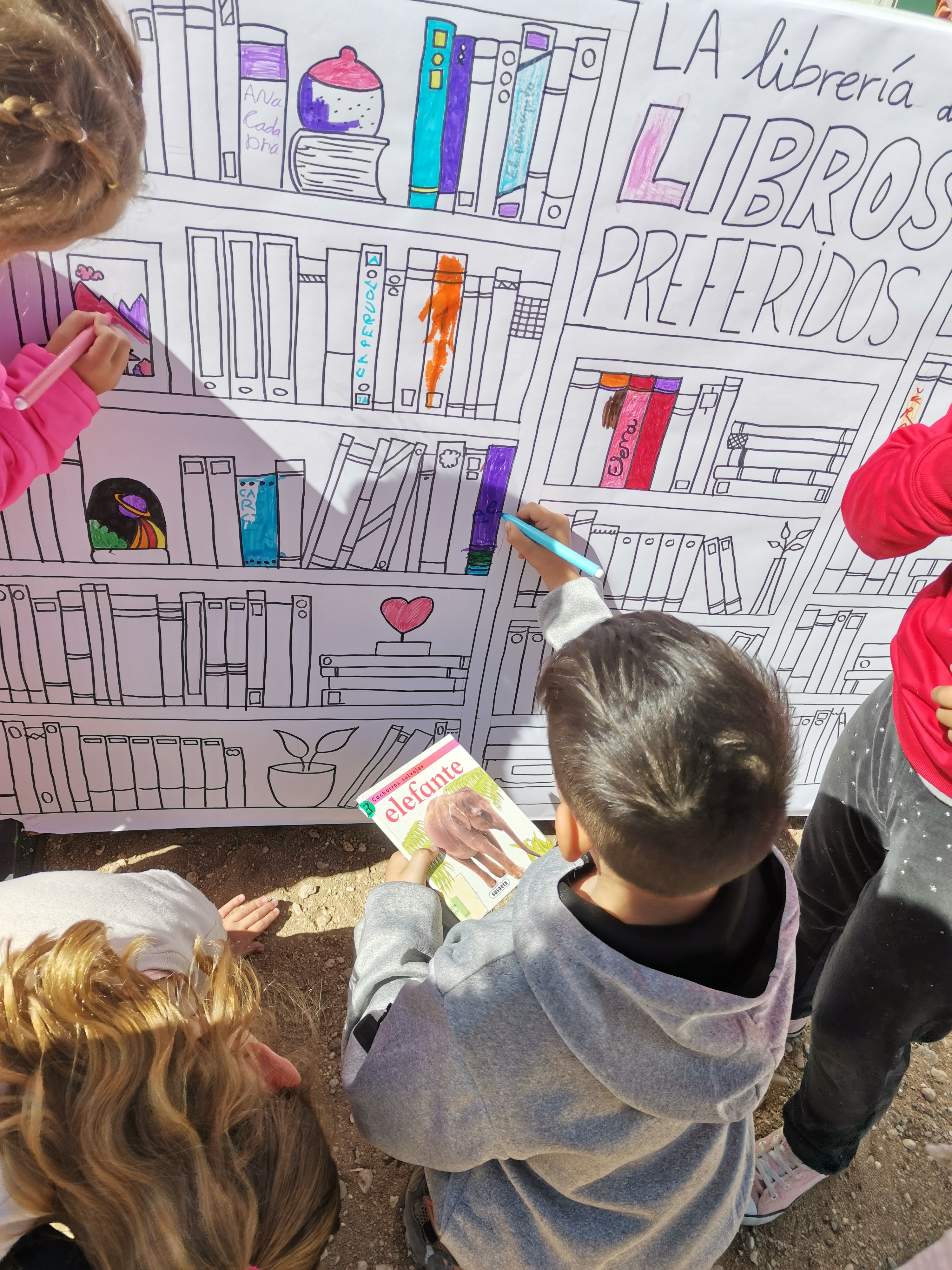 La semana del 23 de abril celebramos en el colegio el día del libro. En estos días la biblioteca se traslada al huerto y se organizaron diferentes actividades como la lectura al aire libre, decoración de murales, cuentacuentos para Infantil realizado por la bibliotecaria del pueblo Mª Carmen o la elaboración de marcapáginas y carteles de animación a la lectura entre otras.