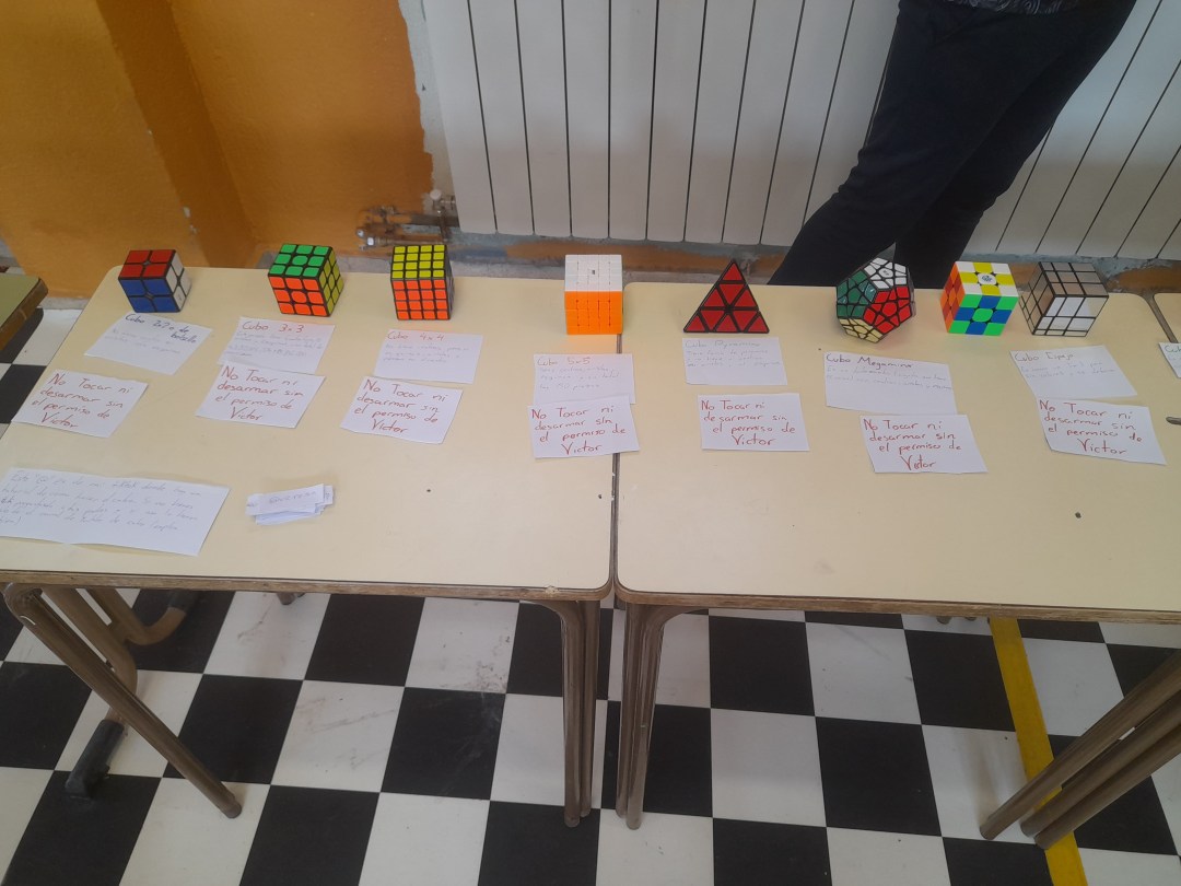 Nos ha enseñado la diferencia entre lados, aristas, centros y esquinas, así como los pasos principales a seguir. Además, nos ha enseñado su gran colección de los diferentes cubos que tiene. ¡Una pasada!