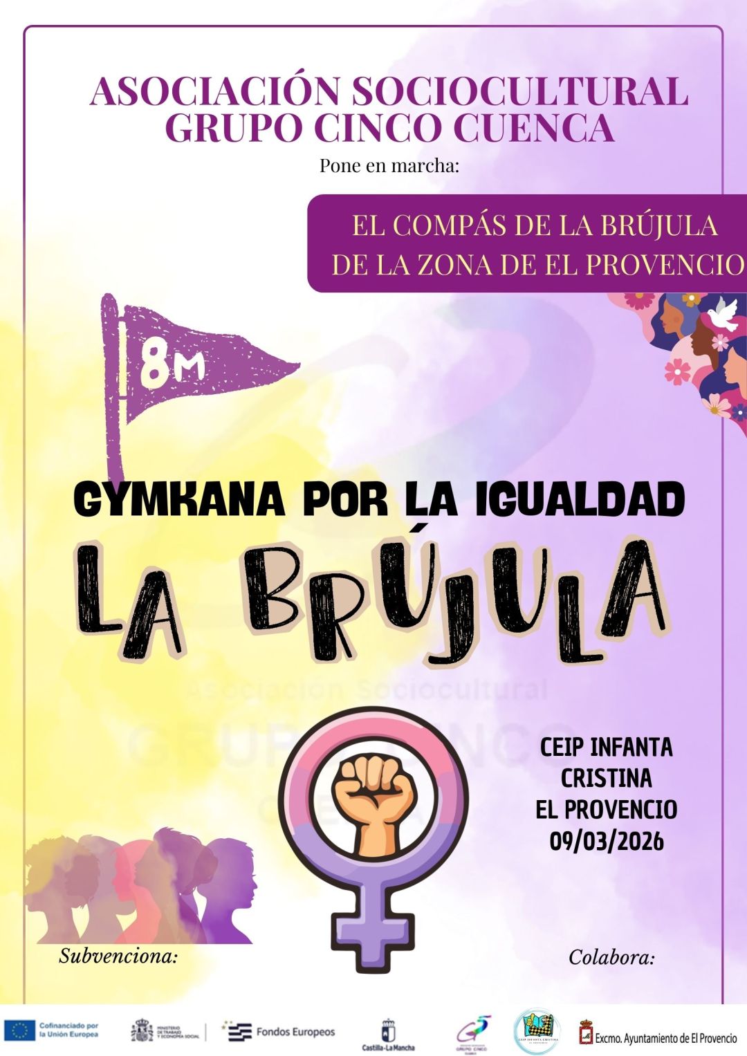 Con motivo de la celebración del Día Internacional de la Mujer, la Asociación Sociocultural Grupo Cinco, a través de su proyecto El Compás de la Brújula de la zona de El Provencio, organizó ayer en nuestro centro educativo una gymkana de actividades dirigida al alumnado con el objetivo de fomentar la igualdad, la reflexión y el conocimiento sobre el papel de la mujer en la sociedad.